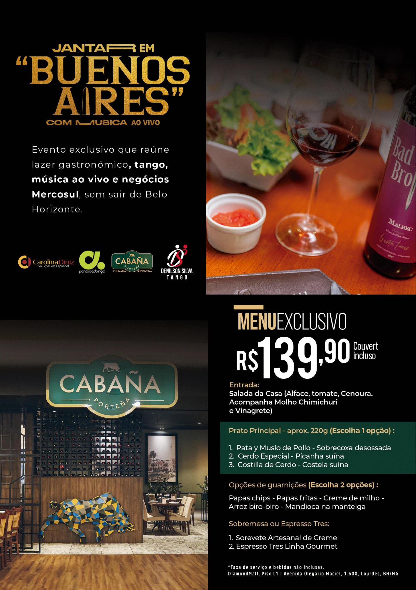 Jantar em ‘’Buenos Aires’’ com Música Ao Vivo e Conexión Latina
